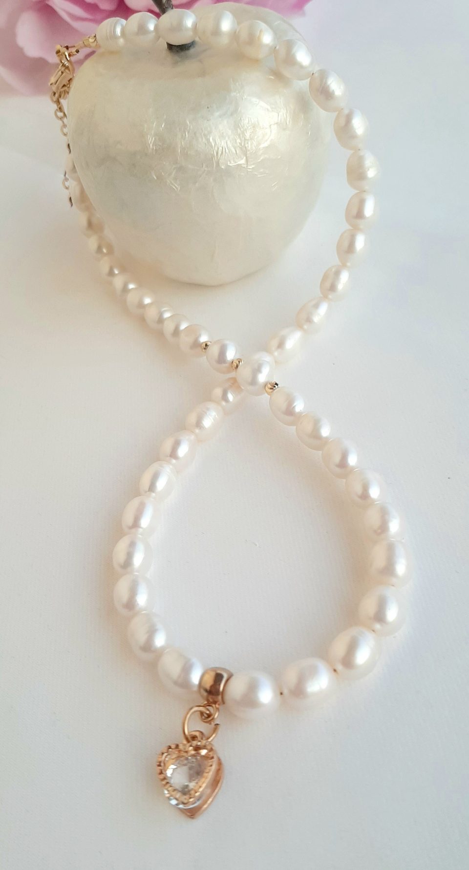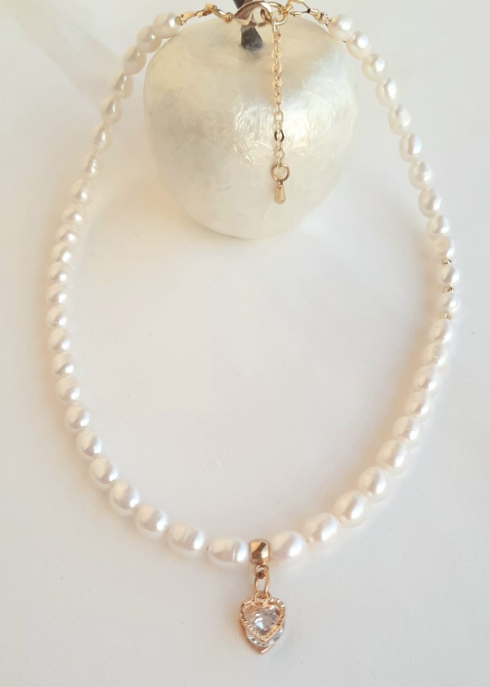 Colier perle naturale 8mm, cu accesorii rodiate, rafinat si elegant