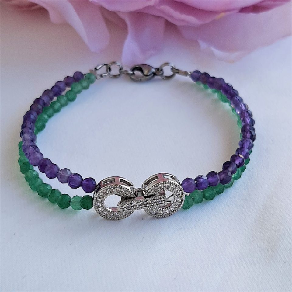 Bratara pentru purificare, realizata cu Ametist natural si accesorii de calitate.