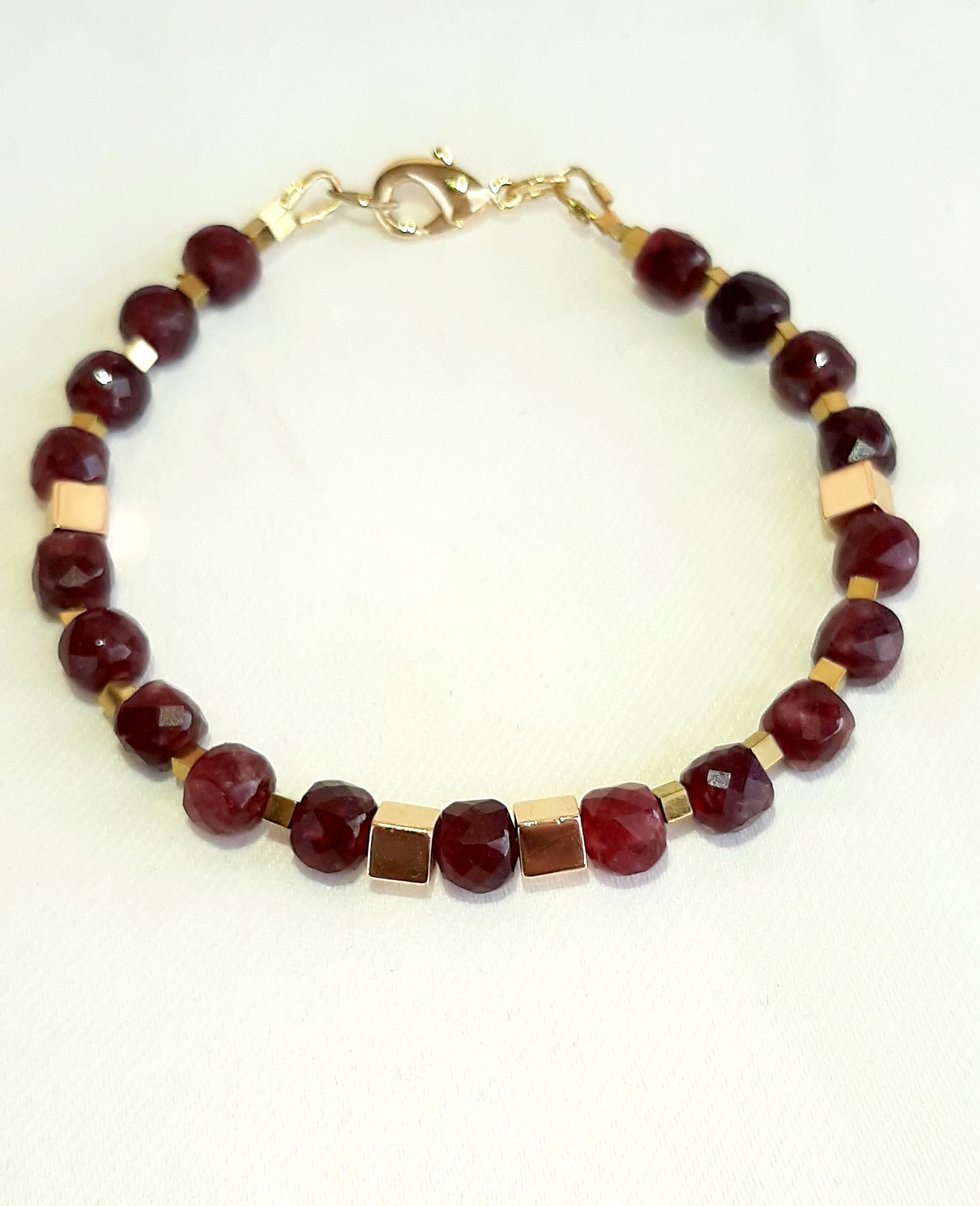 Este realizata manual din pietre semipretioase naturale de Granat, pietre semipretioase de calitate. Bratara este decorata cu hematite patrate. Editie limitata!